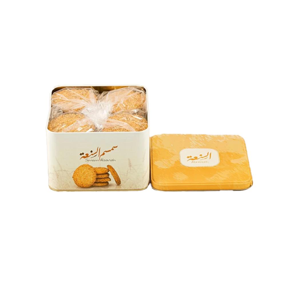 سمسم السنعة عبوة كبيرة، وهو عبارة عن أقراص كثيفة من القمح مغطاة ببذور السمسم النقي، ومعبأة بتنك معدني ذي تصميم جميل وجذاب، ويندرج هذا المنتج ضمن قائمة الأكلات الشعبية الأصيلة في المملكة العربية السعودية، حيث يُفضّل الكثير تناول أقراص السمسم بصفتها المكمل الأنسب لمشروب الشاهي أو الزنجبيل.